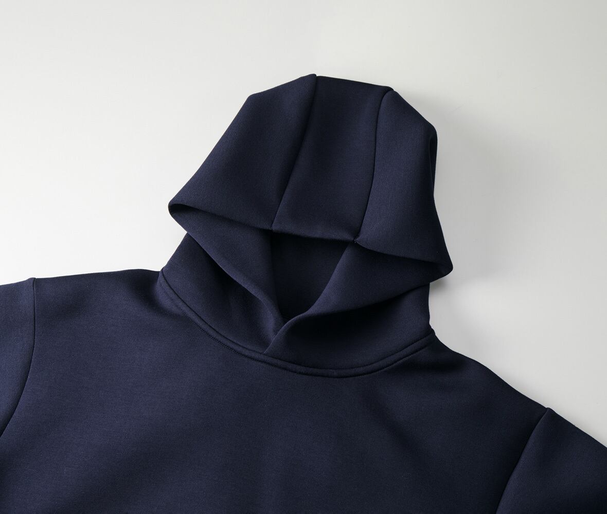 生地厚がしっかりとあるため、大きめフードは立体的で存在感抜群。