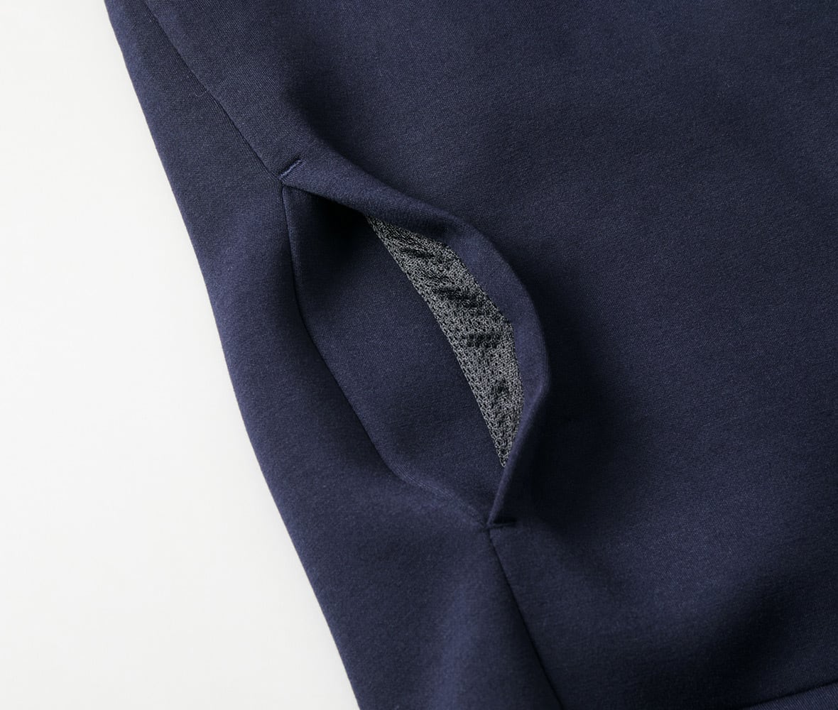 ちょっとしたものが入るシームポケットも付いた優等生パーカです。