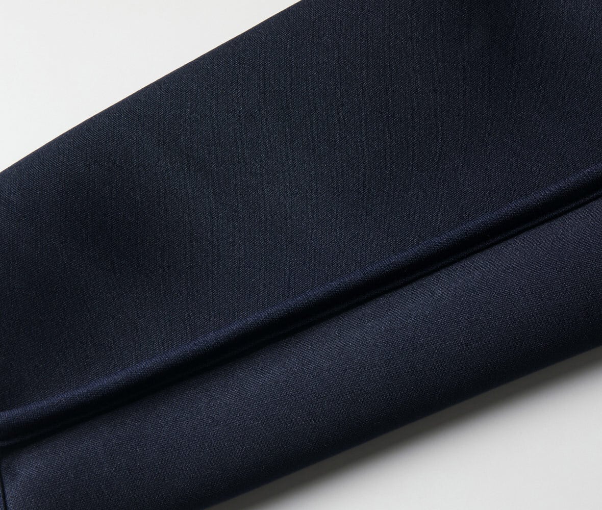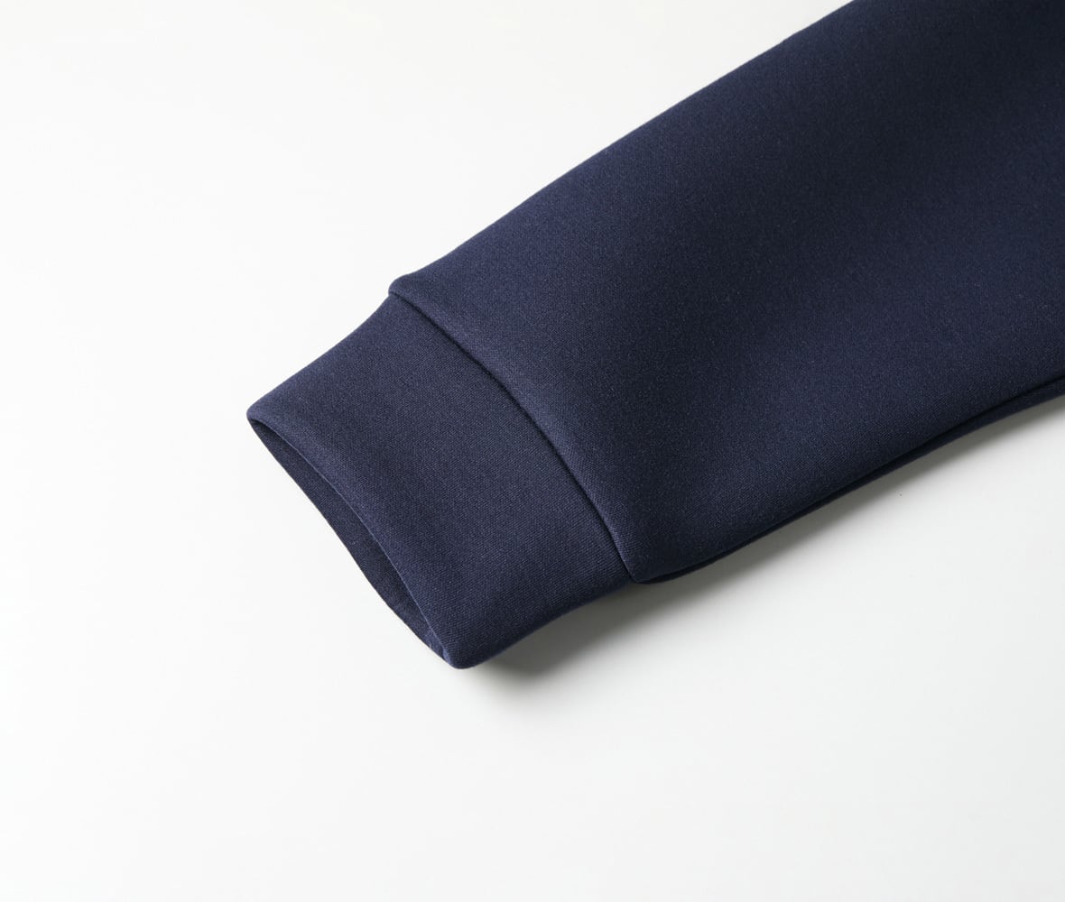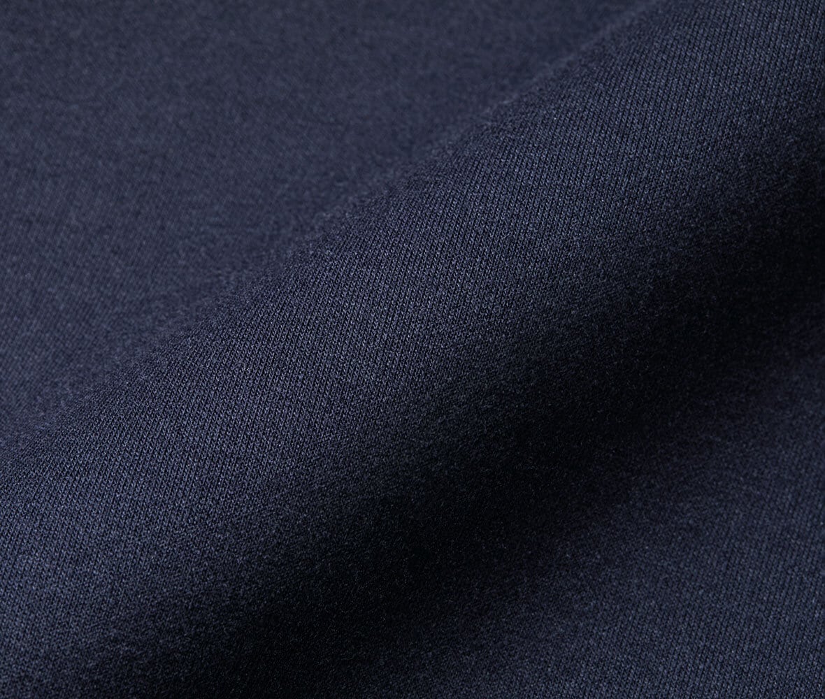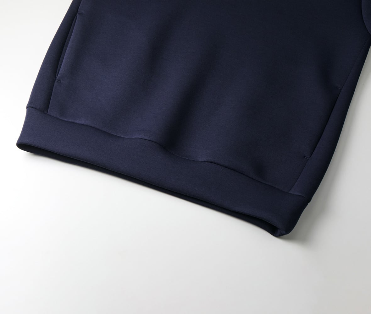 クッション性のあるダンボールニット生地は表糸にレーヨンを混ぜ込むことで、ほどよいやわらかさと光沢感、きれいな生地目を実現。アーバンライクなコーデを後押しします。
