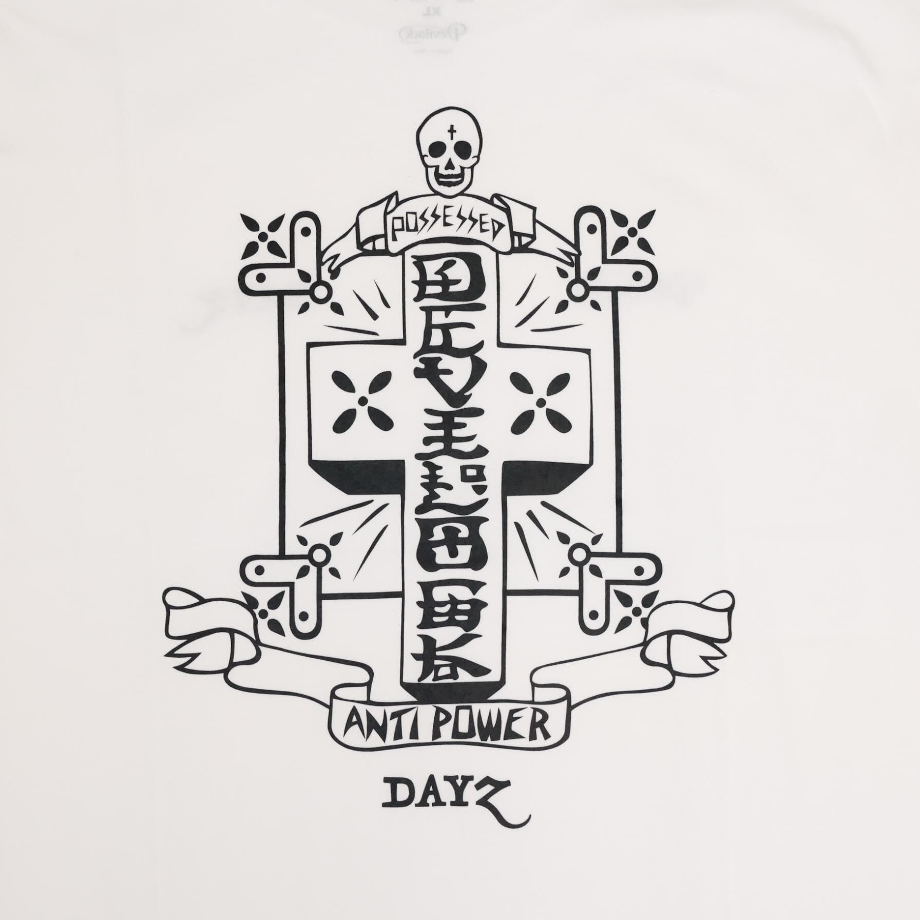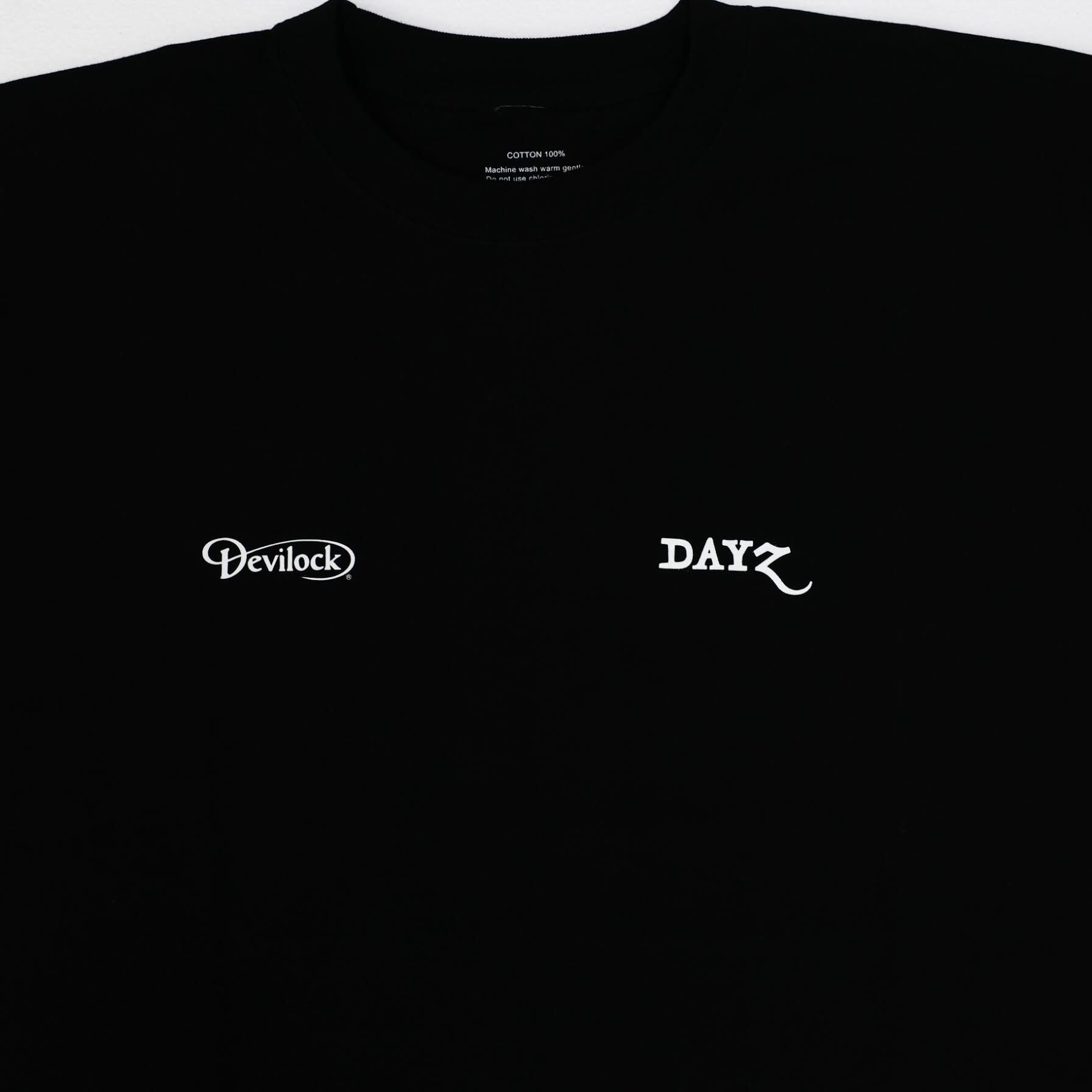 DEVILOCK 29周年を記念したPOP UP開催を記念し、DAYZとのコラボレーションアイテムが登場。フロントはDEVILOCKとDAYZのロゴを胸にプリントされたシンプルなデザインかと思いきや、バックには「DEVILOCK ANTI POWER」デザインが大きく入ったTシャツ。