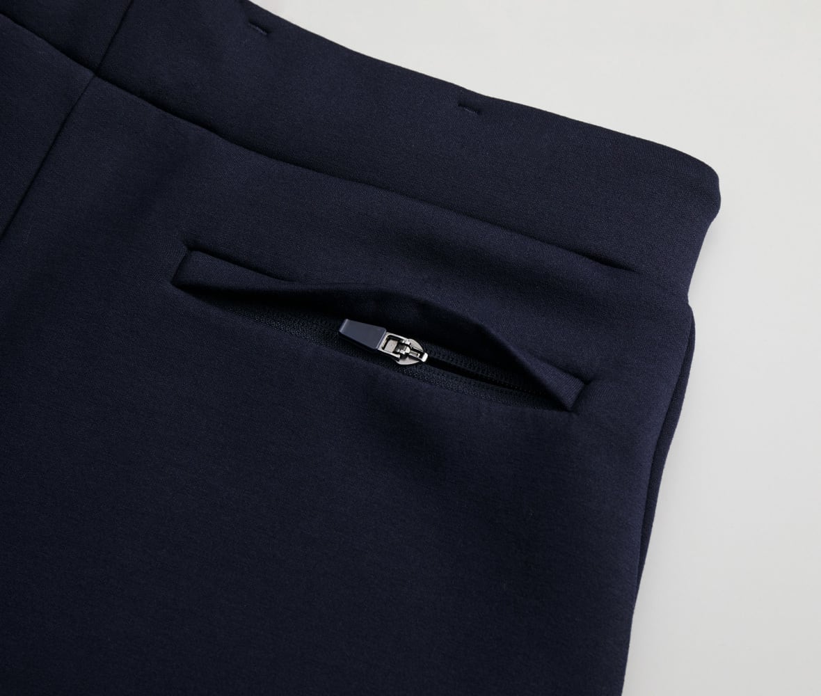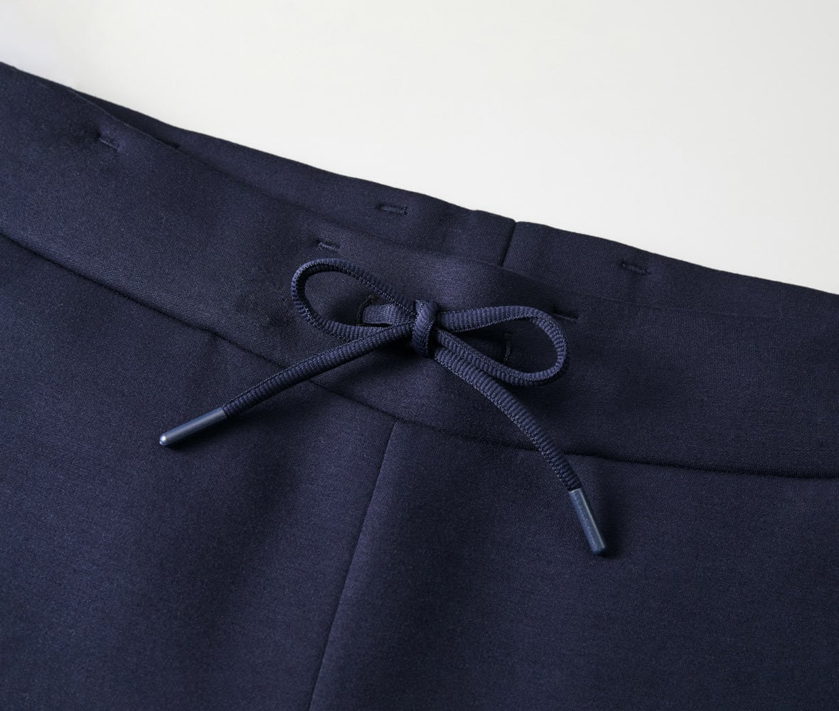 裾口はあえてリブではなく2本針始末を採用したことで、スウェットパンツのような野暮ったさがなくアーバンテイストな仕上がりに。