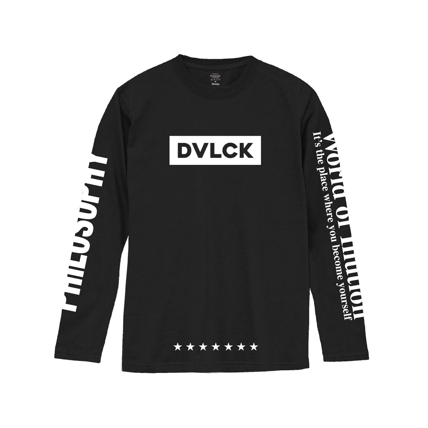 フロントデザインは小さめのDVLCK BOXロゴを胸にワンポイント配置。