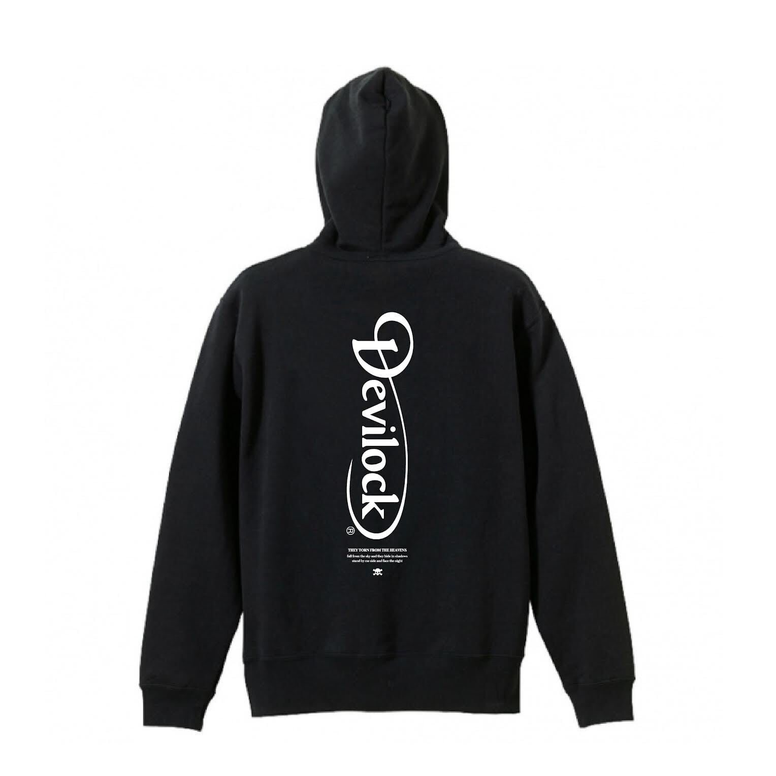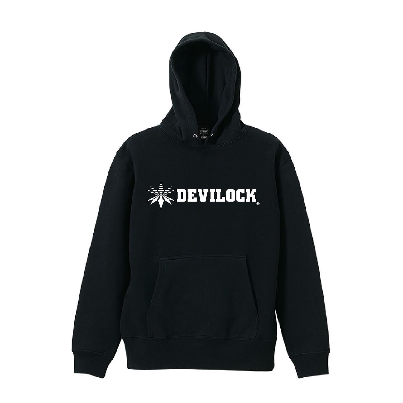 フロントに定番のDEVILOCK ベクトルロゴ、バックには縦型ダイムラーロゴが入ったHOODIE。